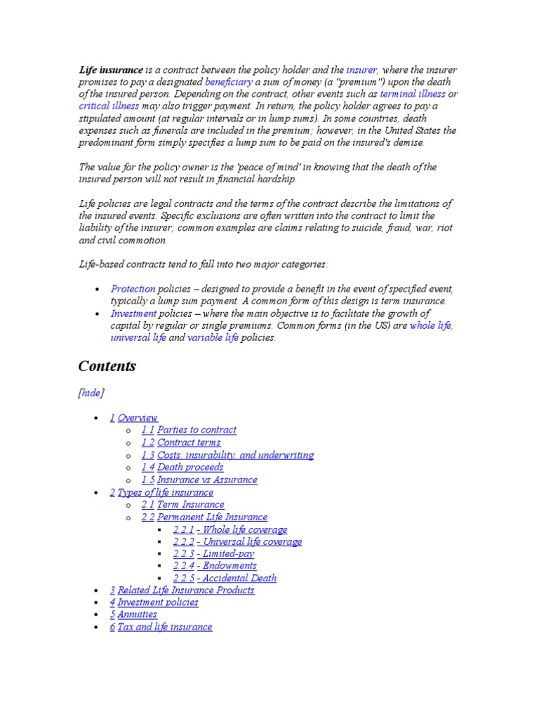 Life Insurance Is A Contract Between The Policy Holder And The